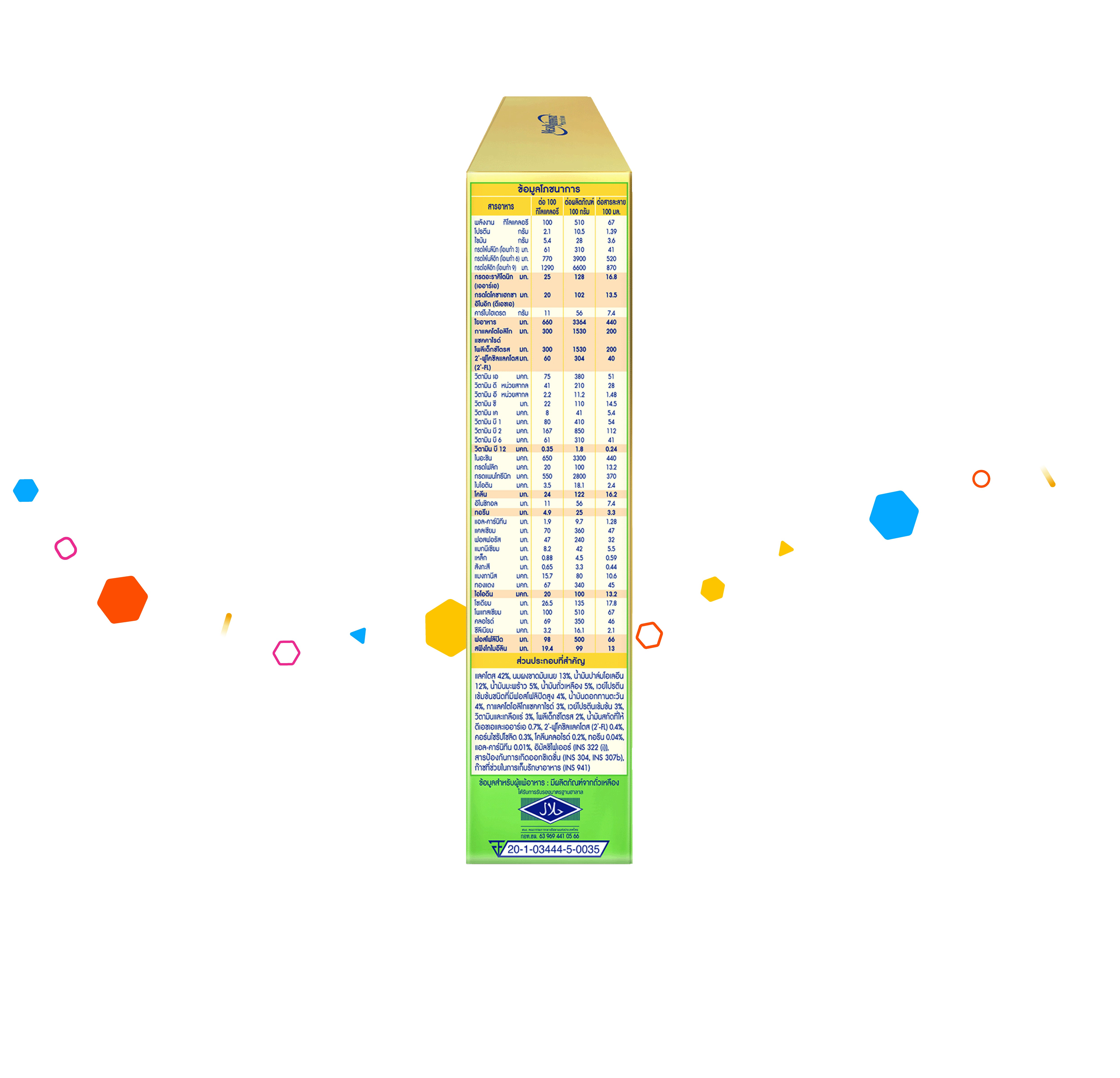 - มี DHA 102 มก. ARA 128 มก. ต่อ 100 กรัม