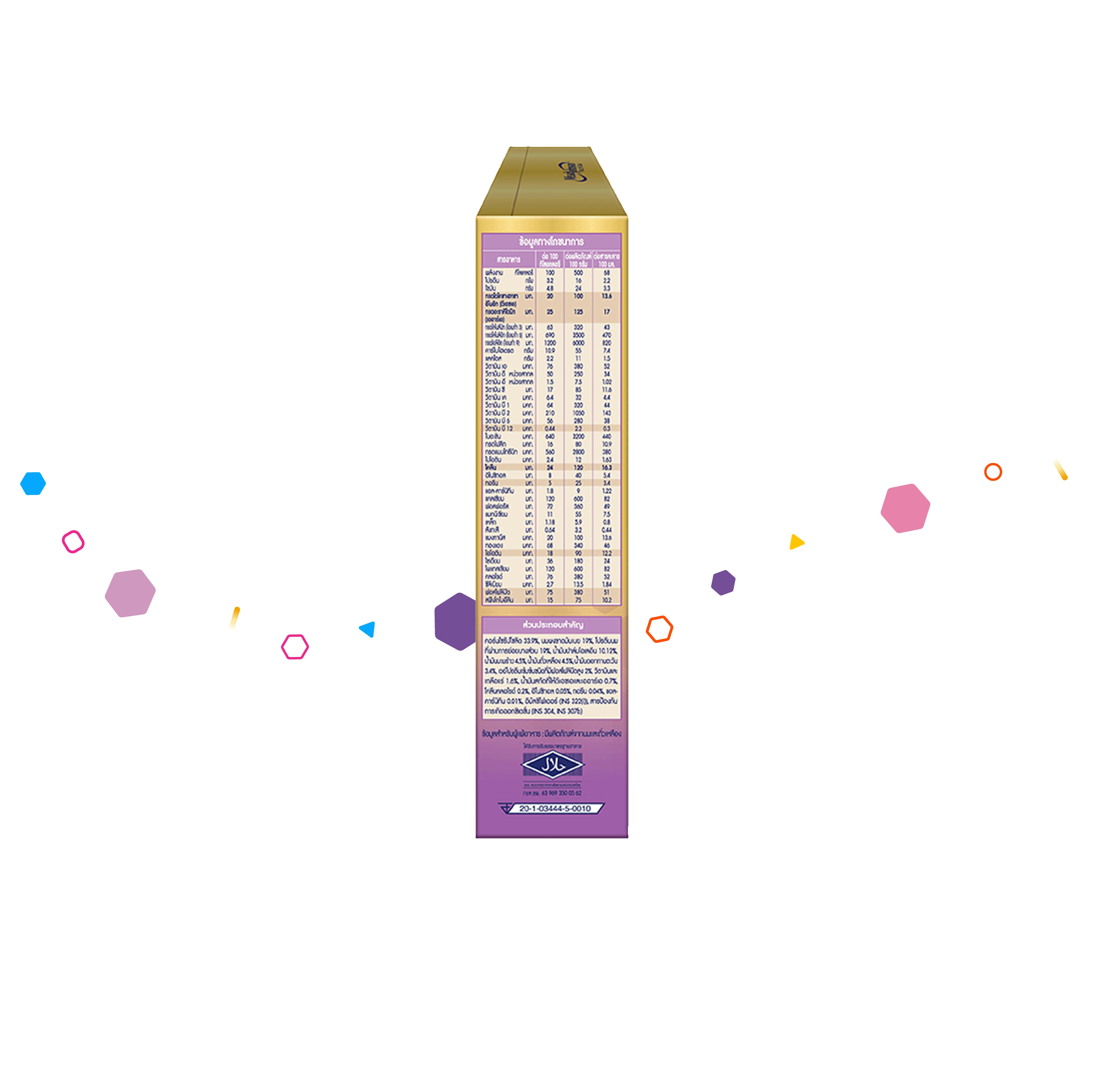 - มี DHA 100 มก. ARA 125 มก. ต่อ 100 กรัม
